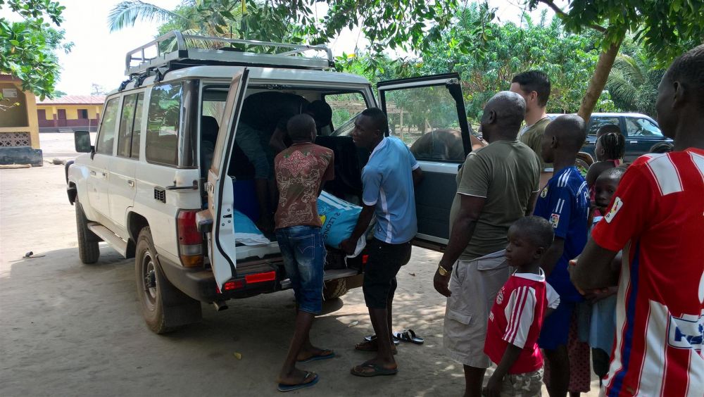 Bereits bei der Ankunft sind Sebastian viele neue Gesichter aufgefallen und Mr. Bangura sorgte sogleich für Aufklärung: Am Waisenhaus sind nur zwei Tage vor unserer Ankunft elf „Ebolawaisen“ aufgenommen worden. Grund dafür sind strenge Auflagen des zuständigen Ministeriums in Sierra Leone. Um Kapazitäten für die Neuankömmlinge zu schaffen (das Waisenhaus könnte elf zusätzliche Kinder nicht stemmen), haben diejenigen Waisenkinder, die dieses Jahr ihr sierra-leonisches Abitur (West African Senior School Certificate Examination – WASSCE) geschrieben haben, das Waisenhaus verlassen und sind bei entfernten Verwandten untergebracht worden – auch dies ist vom Ministerium so vorgeschrieben. Insgesamt handelt es sich hierbei um 15 Kinder. Sebastian hat die neuen, noch recht schüchtern wirkenden Kinder herzlich am Waisenhaus willkommen geheißen und die Arbeit des Fördervereins vorgestellt.