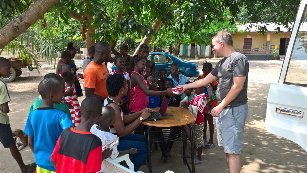 Im April war Sebastian mit Freunden in Madina, um die Kinder am Waisenhaus zu besuchen. Mit im Gepäck waren elf Säcke Reis, weitere Grundnahrungsmittel, kleinere Sachspenden wie Solarleuchten sowie je eine Zahnbürste, eine Tube Zahnpasta und eine Seife für jedes Kind im Wert von insgesamt 400,00 Euro.