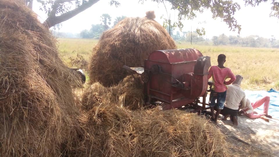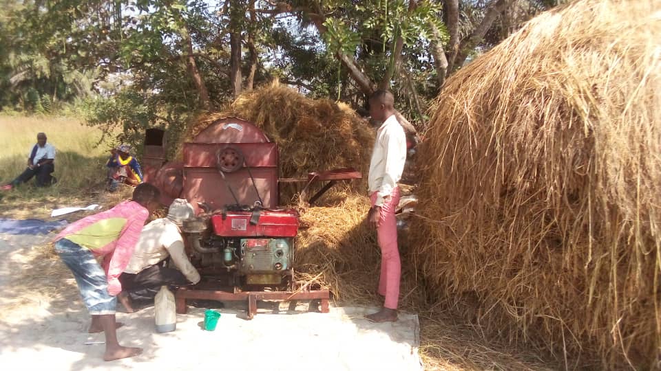 Bislang wirkt sich die Corona-Krise nicht auf das Projekt Rice for Independency aus. Inzwischen wurde die komplette Ernte der Reisanbausaison 2019/20 eingeholt, jedoch noch nicht gedroschen. Dies passiert im Laufe dieses Monats. Danach wird der Reis nach Madina transportiert, getrocknet, angekocht, wieder getrocknet, um sodann die Schale mit der Milling Machine zu entfernen und unerwünschte Partikel mit dem Destoner auszusortieren. Schließlich wird der Reis in Säcke abgepackt und im mit unserer Unterstützung errichteten Lagerhaus gelagert. Dieses ist jedoch noch nicht ganz fertiggestellt ist. Es fehlt noch die Dachkonstruktion.
