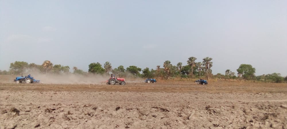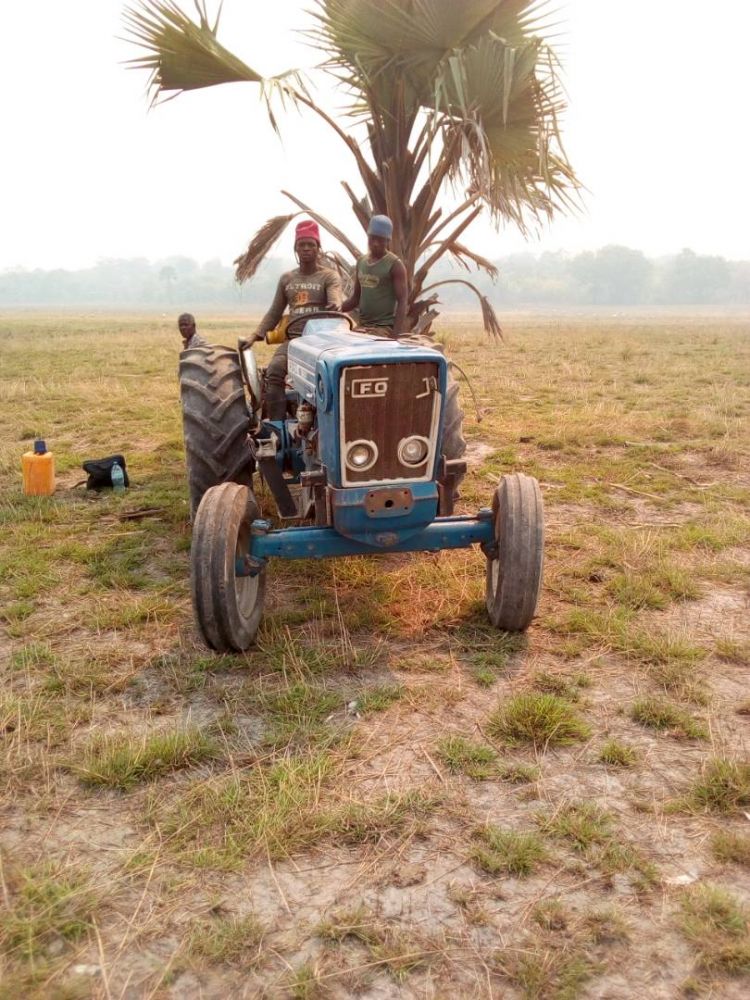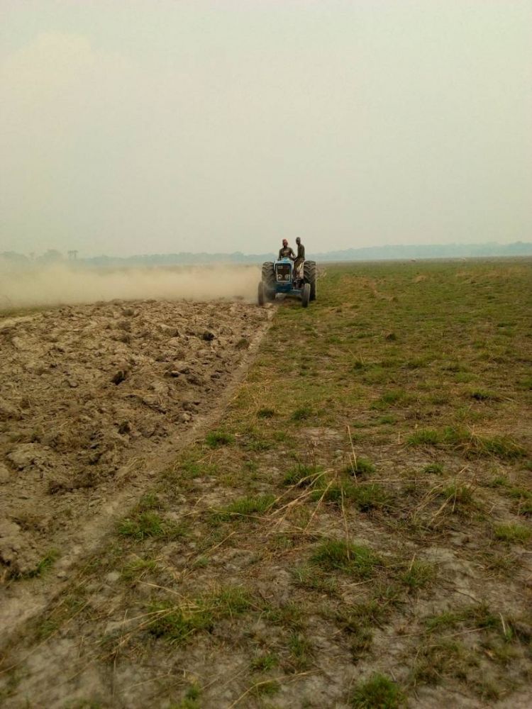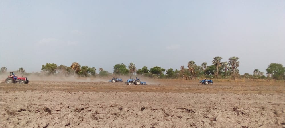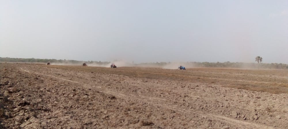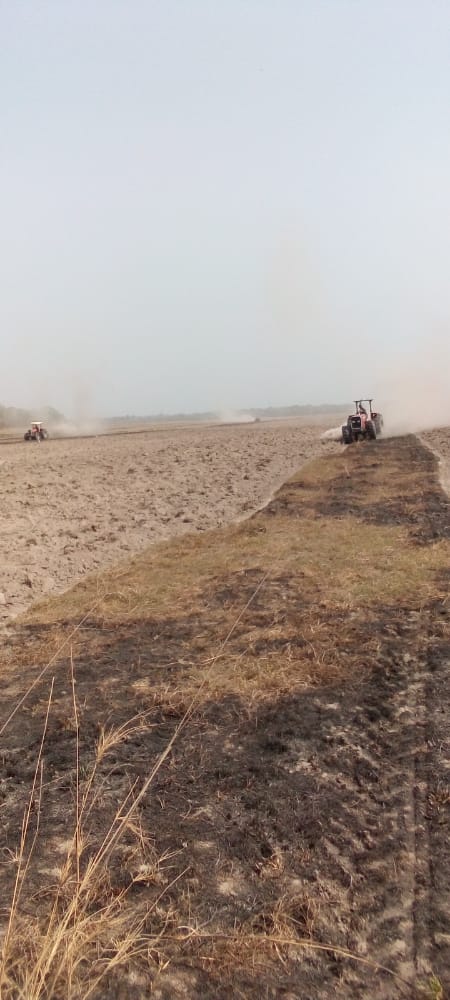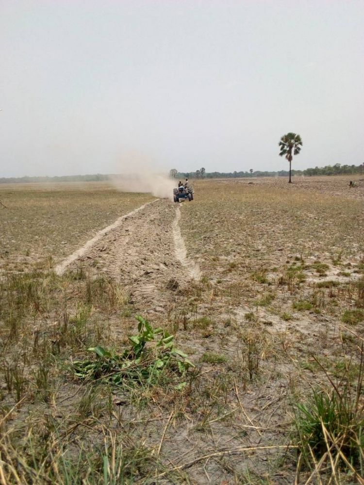 So stellten wir Mittel für die Leihe von Traktoren und deren Betrieb (Treibstoff und Arbeitskräfte) zur Verfügung. Wie auf folgenden Bildern zu erkennen ist, befinden sich die Vorbereitungsarbeiten auf der Reisfarm auf Hochtouren.