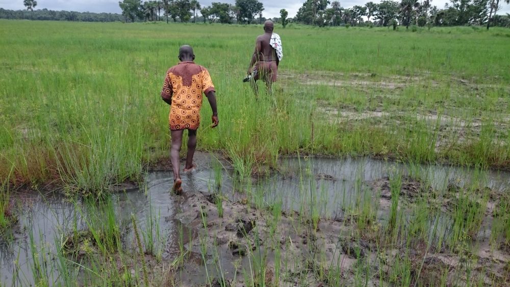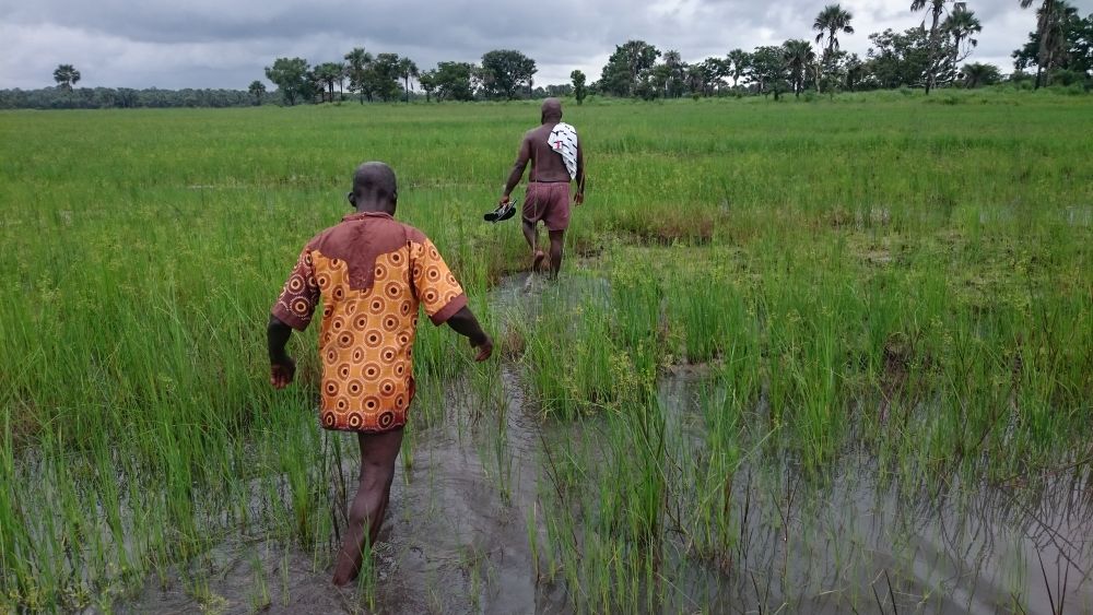 Anfang Juli war Sorie auf der Reisfarm, um zu begutachten, wie weit der Fortschritt beim Reisanbau ist.