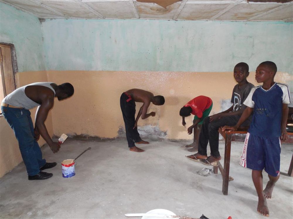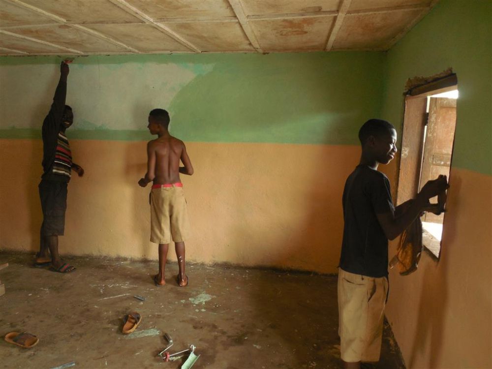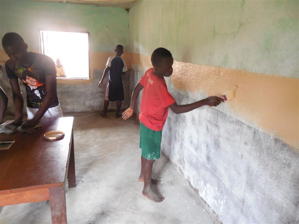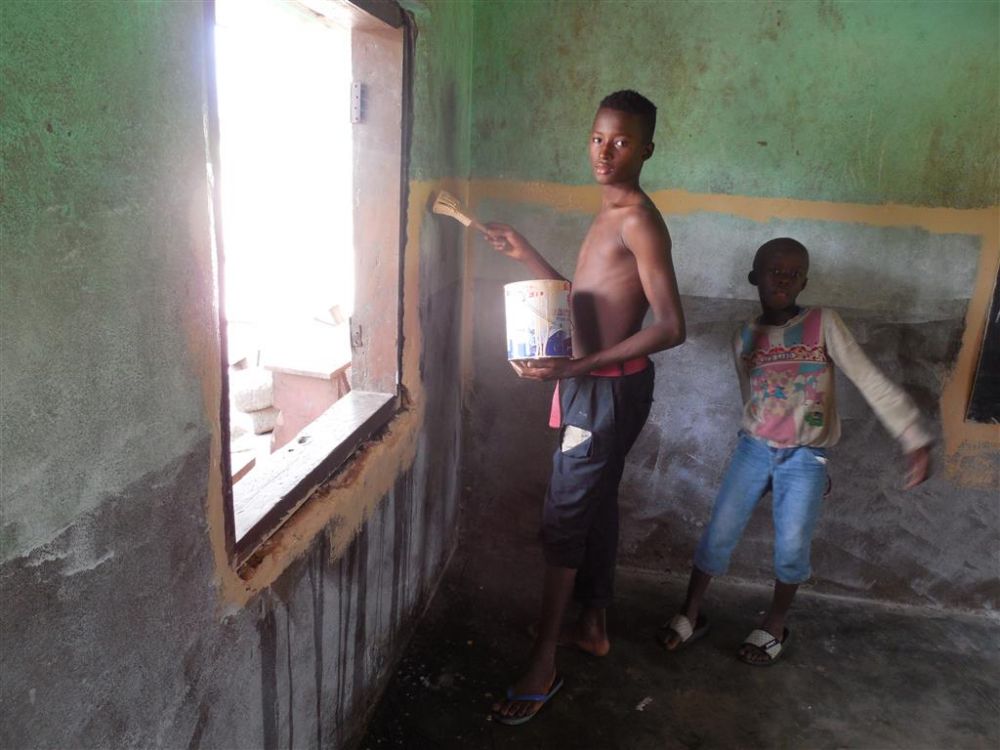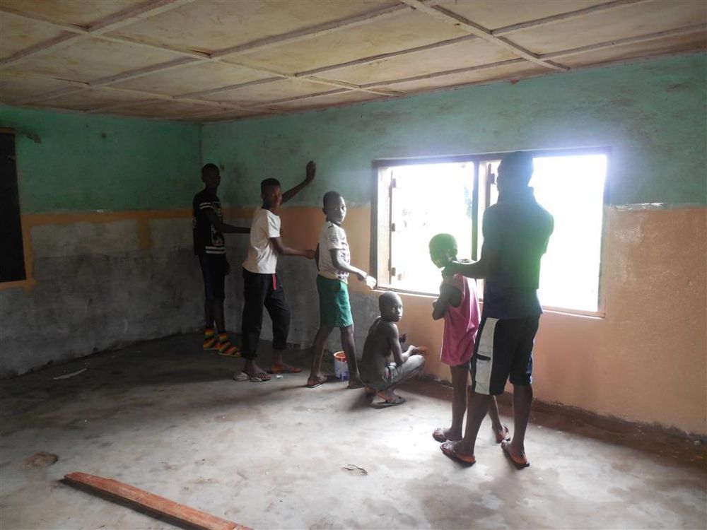 Gleich zu Beginn meines diesjährigen Aufenthaltes in Sierra Leone kam der Gedanke auf, die Sommerferien der Kinder zu nutzen und am Gebäude der Primary School (vergleichbar mit der deutschen Grundschule) zu arbeiten. Wie an allen anderen Gebäuden des Waisenhauses wurde hier seit dem Bau vor etwa 15 Jahren nichts mehr zum Erhalt oder zur Modernisierung getan; sowohl die Klassenräume als auch deren Ausstattung befanden sich in einem sehr heruntergekommenen Zustand.