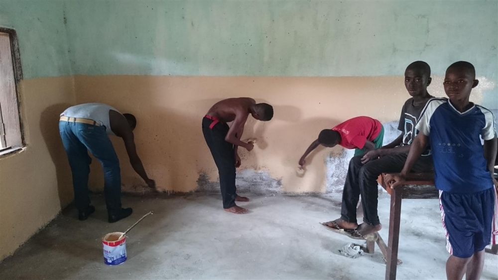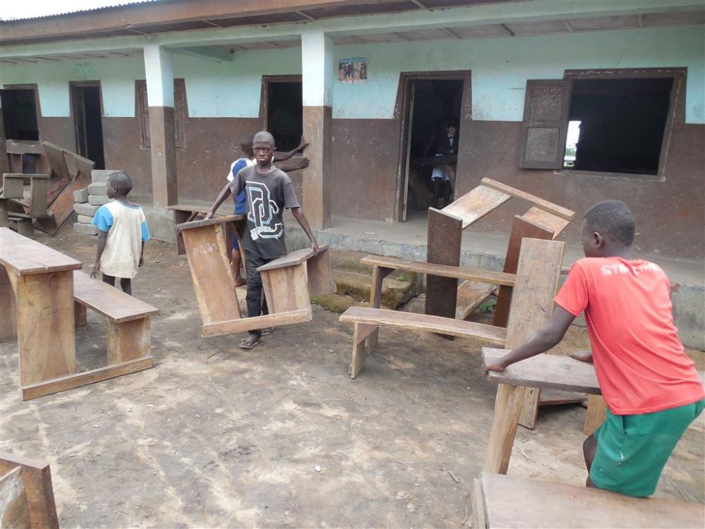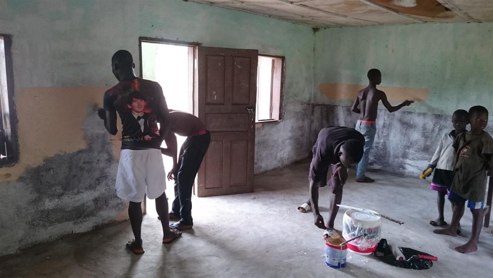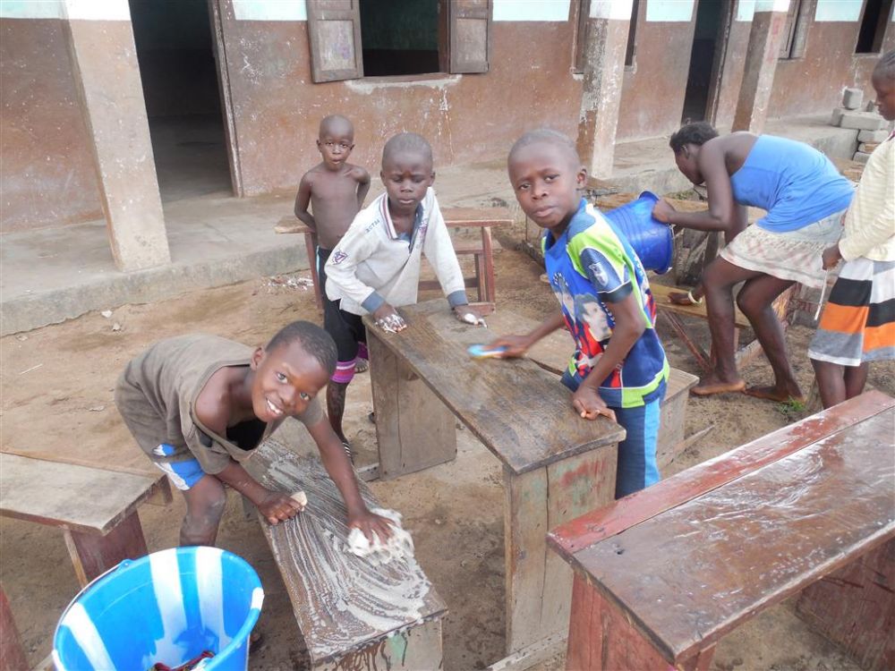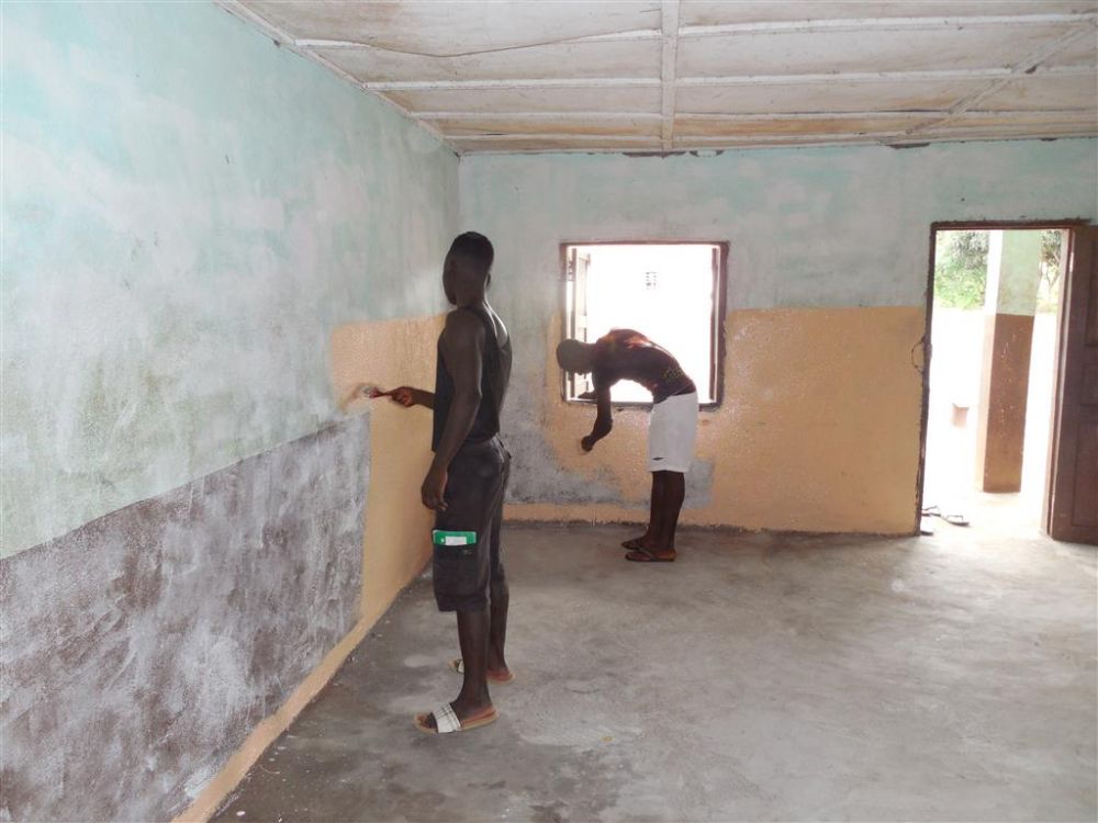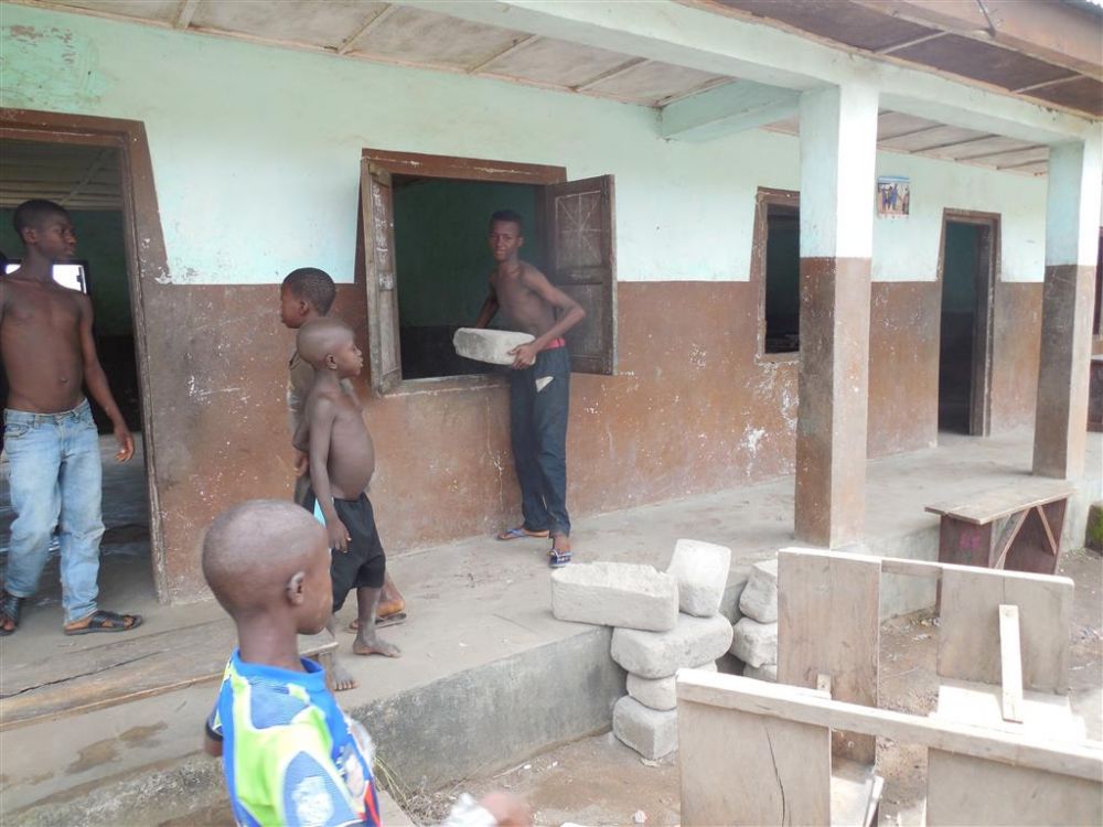 Gleich zu Beginn meines diesjährigen Aufenthaltes in Sierra Leone kam der Gedanke auf, die Sommerferien der Kinder zu nutzen und am Gebäude der Primary School (vergleichbar mit der deutschen Grundschule) zu arbeiten. Wie an allen anderen Gebäuden des Waisenhauses wurde hier seit dem Bau vor etwa 15 Jahren nichts mehr zum Erhalt oder zur Modernisierung getan; sowohl die Klassenräume als auch deren Ausstattung befanden sich in einem sehr heruntergekommenen Zustand.