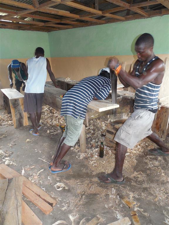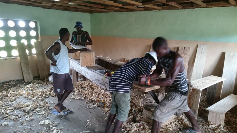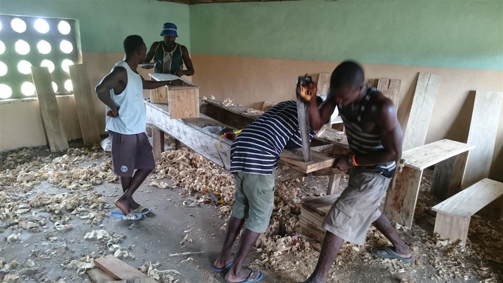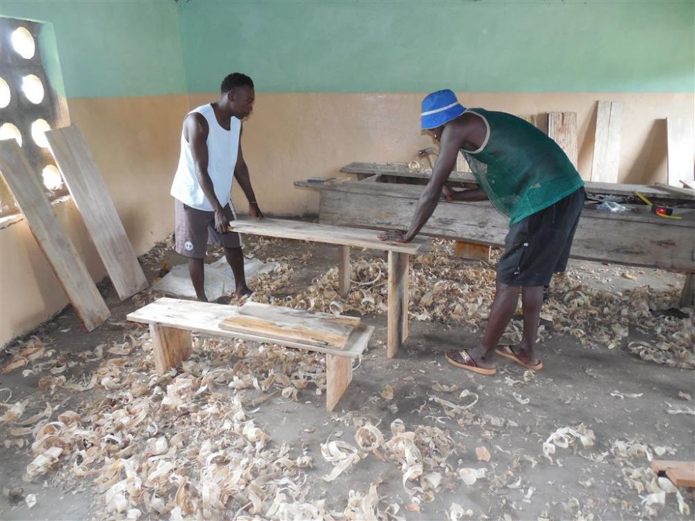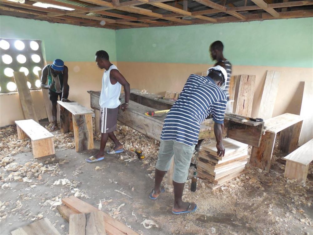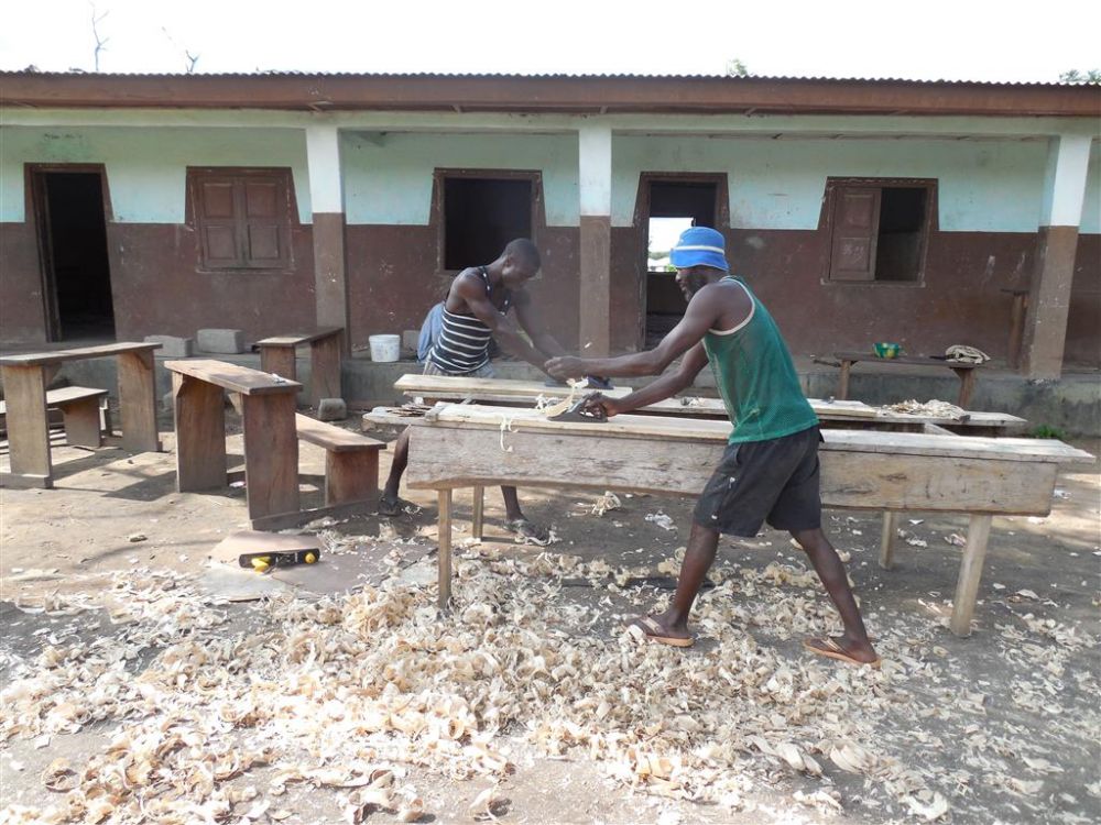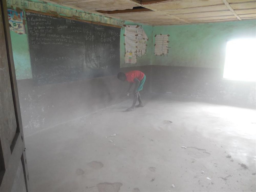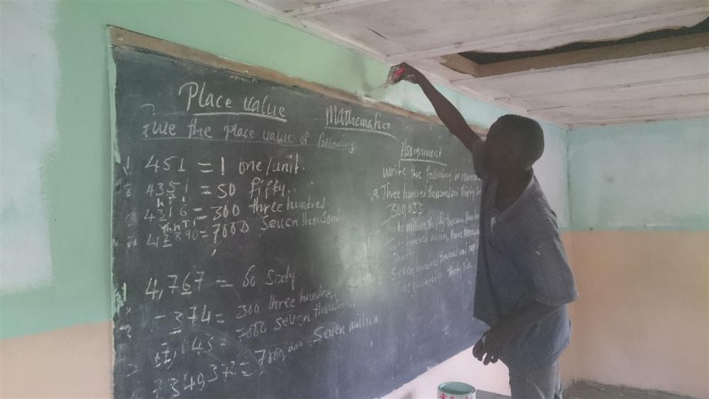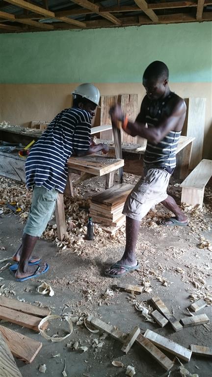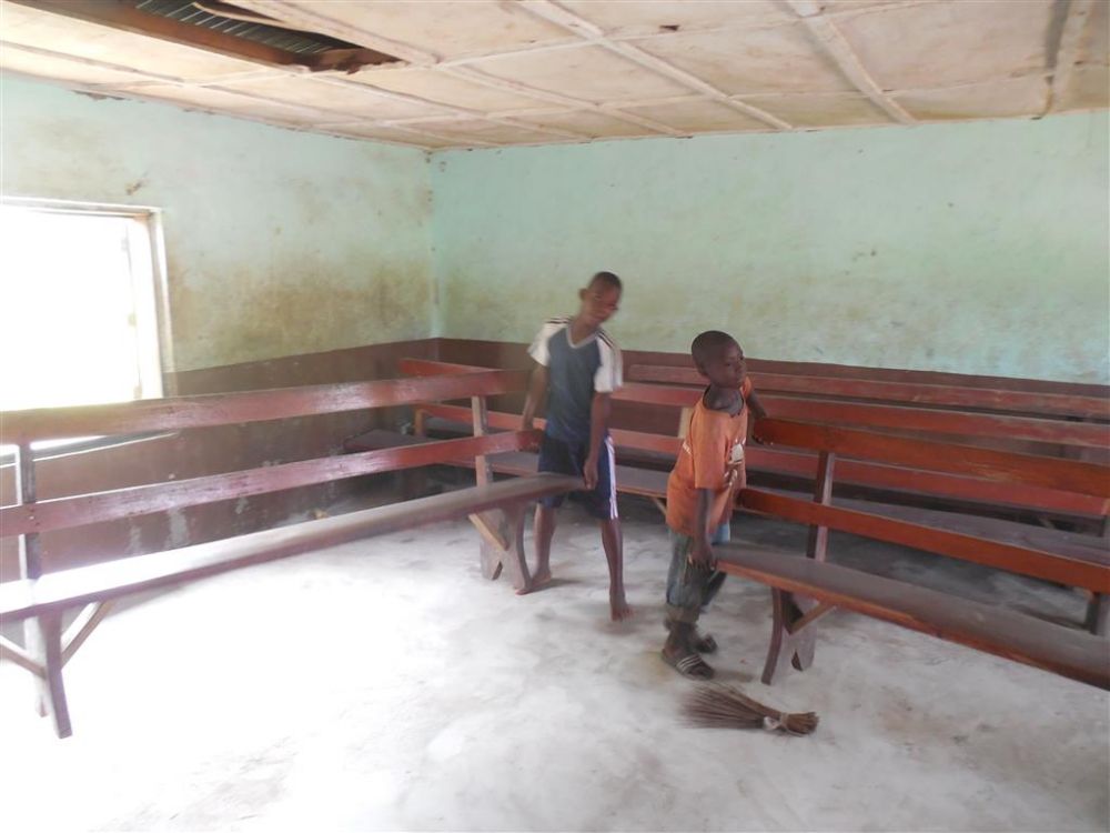 In den folgenden drei Wochen wurden also die Klassenzimmer ausgeräumt, ausgefegt, Wände gesäubert, Tafeln abgeklebt und die Klassenzimmer im Anschluss daran gestrichen. Einige Kinder putzten die Schulbänke, währenddessen sie mir erzählten, dass sie an diesen mindestens zu viert, wenn nicht gar zu fünft sitzen würden. Auch einige Backsteine fielen mir in den Klassenzimmern auf – ebenfalls Sitzgelegenheiten für die Kinder. Mir als Lehrer brannte natürlich das Herz. Wie sollen sich die Kinder mit so wenig Platz vernünftig auf den Unterricht konzentrieren können, ja, gar schreiben lernen? Auch hier musste etwas getan werden und nach Rücksprache mit Sebastian und Vergleich einiger Angebote von Schreinern der Umgebung beschlossen wir, 57 neue Schulbänke anfertigen zu lassen. Zusammen mit den erhaltenen Schulbänken kommen wir so nun auf eine Zahl von 100 Schulbänken für rund 300 Schülerinnen und Schüler. Ebenso beschlossen wir, die Deckenkonstruktionen der Klassenzimmer erneuern zu lassen.